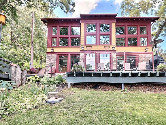 Pelican Lake Senns Beach! Meticulous stunning craftsmen home and guest house with 50 ft of lake frontage and a 2 ac back lot. The attention to wood work and details throughout is an architect's delight! The home and guest house have been completely remodeled! The roof line was raised, custom trim inside and out including scarf joints, exposed roof tails, and wood buttons! A chefs kitchen with custom cabinets, Wolf cook top, Miele built in coffee espresso machine, dual ovens, prep sink , pantry and more. The home has geothermal heating and cooling and an air exchanger! The 2 ac back lot has a 2BD, 1BA guest house! The perfect man cave with a wood burning stove and a gorgeous custom built log bar that's great for entertaining, especially with its own deck with awesome lake views.