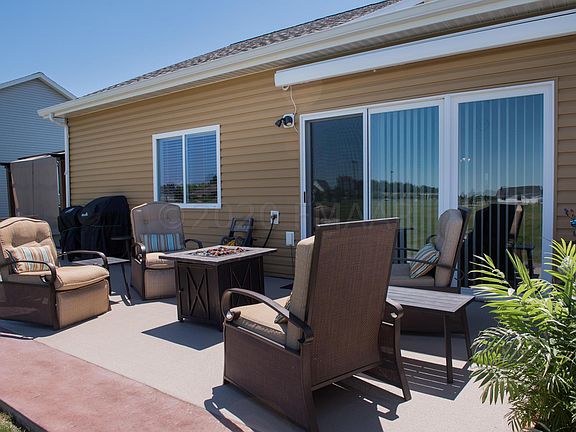 Highly sought-after ONE LEVEL living with LOW SPECIALS and no backyard neighbors! This beautiful 4BD, 2BTH home features many updates and desired features including all new kitchen appliances and counter tops, electric fireplace, flooring, trim, solid core doors , added lighting throughout, and window treatments. You'll love the bright and airy sun room and spacious en suite with walk-in closet and private bath with dual sinks. You'll appreciate the outdoor space too with newly expanded stamped concrete patio and electric awning, brand new 3 season enclosed pergola with a hot tub that is included. The completely finished and heated three stall garage won't disappoint either with epoxy floors. Best of all $100/month association fee takes care of your lawn care and snow removal!