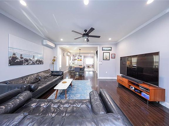 Charming & Fully Renovated Semi-Detached Home in Homecrest Welcome to this stunning semi-detached single-family home in the heart of Homecrest—offering modern elegance, comfort, and convenience. Completely renovated inside and out just four years ago, this home is move-in ready with high-end finishes and thoughtful upgrades throughout. Enter inside to an inviting open-concept first floor, where an oversized living room seamlessly flows into the dining area, creating the perfect space for relaxation and entertaining. Beautiful dark hardwood floors add warmth and sophistication, while the European-style kitchen is a chef’s dream—featuring a double sink, premium German appliances (Wolf & Bosch), and direct access to the backyard and basement. A stylish half-bathroom completes the main level. Upstairs, you’ll find three spacious and sun-filled bedrooms, along with a sleek, modern full bathroom. The fully finished basement offers expansive additional space—ideal for a playroom, entertainment area, or home office. This home is packed with upgrades, including a Fujitsu 6-zone ductless split A/C system, double-pane windows, a brand-new boiler (just 6 months old), and an upgraded electrical panel with a Level 2 EV charger (50A max output). The exterior is just as impressive, with brand-new siding featuring an elegant marble front and a new roof installed only 3 years ago. One of the standouts features of this property is the beautifully designed backyard—fully paved with brick flooring, enclosed by a wooden fence, and illuminated with stunning outdoor lighting. Whether you're hosting summer BBQs, intimate gatherings, or simply unwinding under the stars, this outdoor space is perfect for creating lasting memories. Additional modern touches include a wireless antenna for the backyard and internet data ports installed in every room for seamless connectivity. This is a rare opportunity to own a meticulously upgraded home in a prime location.