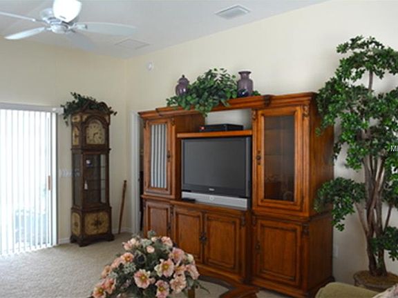 The Villages of Buttonwood with easy access to Lake Sumter and Brownwood. Completely turn-key with a Yamaha Gas Golf Cart, this home has a lot to offer! Beautiful wood laminate flooring in the kitchen and bathrooms, carpet in the bedrooms and main living area. Vaulted ceilings throughout! High quality gorgeous furnishings! Granite look counters and a large breakfast bar! Window treatments/Color Palatte are neutral and home is ready for it's new owner! Water Softener. Maintenance free exterior! Ask for Inv entory List, you won't believe it!