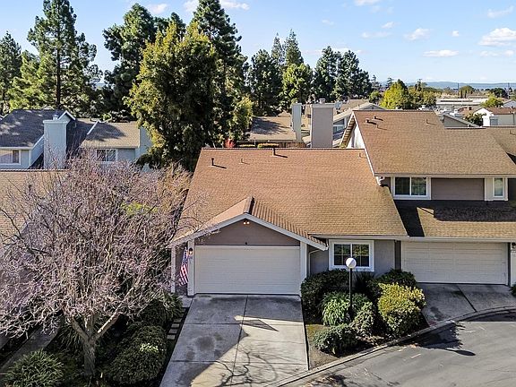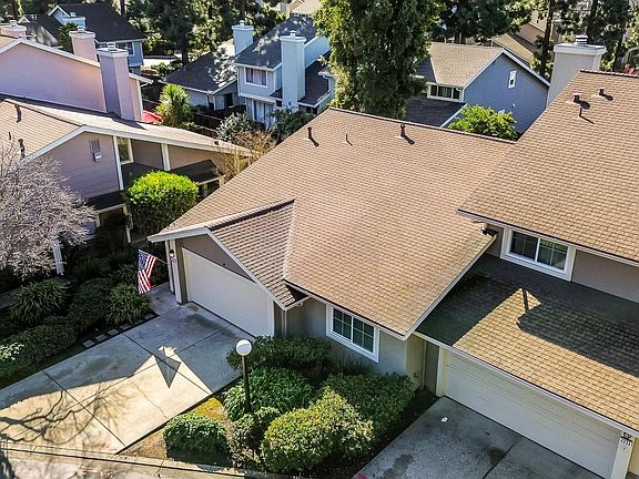 Rare Plan 1 end-unit townhome w/dedicated 2-car driveway + attached 2-car garage! Meticulously maintained home on a private cul-de-sac in the coveted Sandpiper community, a secure Tahoe-like retreat setting w/gated access, mature landscaping, exceptional curb appeal & pride of ownership. With the feel of a single family home, this 2-bed, 1.5-bath plan features the entire living area on one convenient level. A soaring vaulted living room ceiling showcases a bright, open concept anchored by newer LVP flooring, while the expansive vaulted ceiling primary bedroom offers a polished renovated en-suite retreat. Newer upgrades include furnace (pre-plumbed for future AC!), both bath remodels, selected windows, tile flooring, overhead garage door opener, interior paint including fireplace accent, lighting pendants & stainless steel appliances. Private wrap-around back patio w/slider access beckons you to garden, entertain or to your own private retreat. Dedicated 2-car attached garage w/laundry, storage & interior access. Dual entry security gate, clubhouse & community pool and spa are among the amenities you will enjoy at Sandpiper!