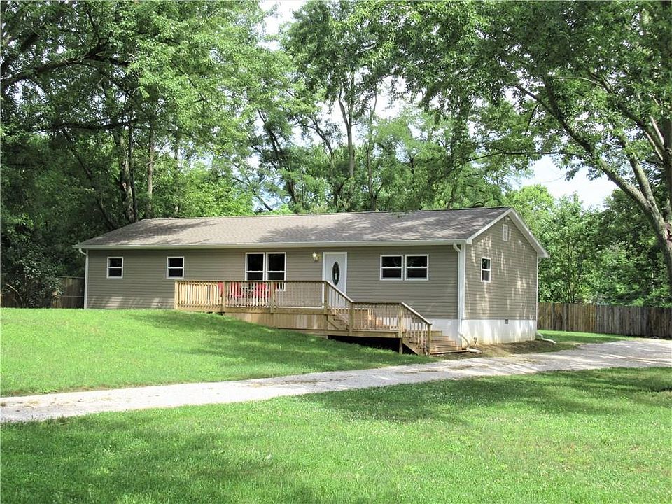 Stunning Brand NEW Custom Built Ranch on 2 Ac (+/-) w/ a Pond!! Open Floor Plan offers 3 Bedrooms and 2 Full Baths-Gourmet Kitchen offers lots of cabinets plus closet pantry for storage-Displays 8ft. Center Island (provides seating space for 5) Plus an additional 13 x 8 dining area which Overlooks Backyard w/ 12 x 12 deck. Spacious 22x13 Living Room makes entertaining easy-Beautiful Wood Laminate Flooring or Custom tile in all main areas. Private Master Suite includes Relaxing Garden Tub, Custom Tiled Separate Shower and Dual Sinks- HUGE 13x10 Walk In Closet provides tons of storage! Plenty of room to roam on this sprawling lot with a creek and stocked pond surrounded by mature trees and gorgeous views. This one wont last Long!!