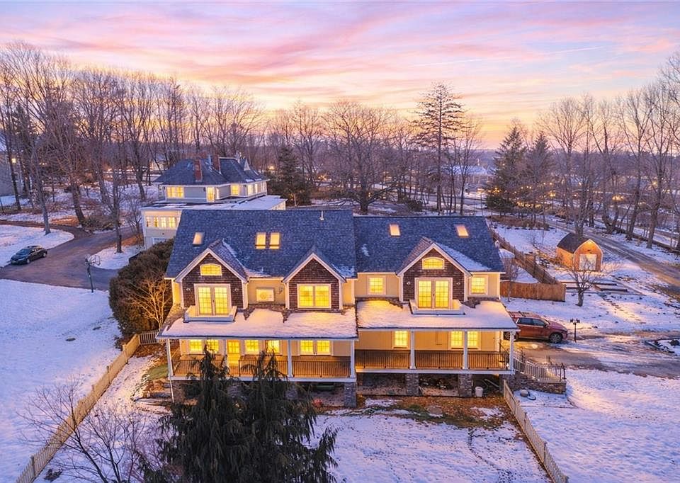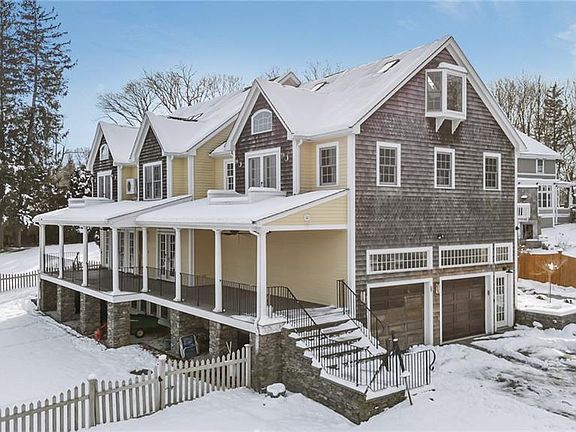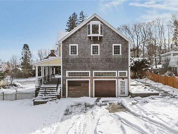 Set along a quiet, tree-lined drive, this residence has been renovated and re-designed with intention. A classic New England home with refined interior choices, every space has been thoughtfully curated. The main level centers around a rebuilt designer kitchen featuring custom cabinetry, marble counters, a black walnut island, and a full Thermador appliance suite, a Coppersmith hood, Waterstone fixtures, a marble backsplash, pot-filler, brass hardware, and a wet bar. The kitchen opens to the living & dining areas, where reclaimed barn beams, wide oak flooring, and a gas fireplace add warmth and depth. A powder room completes the level. French doors off the living & dining rooms open to a covered porch overlooking a fenced yard. A Dutch door from the kitchen opens to a stone walkway, leading to raised garden beds and a new shed with power and water. The upper levels offer 4 bedrooms and 3 full baths, including a primary suite with a spa-inspired bath, soaking tub, steam shower, double vanity, and a custom 10x17 walk-in closet. A Juliet balcony captures morning light, while a flexible upper-level space offers Sakonnet River views and a full bath. The finished lower level provides versatile guest or recreational space, a full bathroom, and storage. Additional features include a large heated garage with high ceilings suitable for a car lift, custom built in entry storage, whole-house mini-split climate control, a young roof, skylights, phantom screens, mahogany doors and more.
