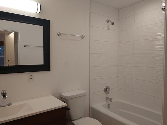 Beautiful and bright classic Cardiff duplex. Single car garage with washer/dryer. Two driveway parking spaces. New masterbath tub/shower. New paint throughout. All tile flooring. Two closets in master bedroom. Updated interior lighting and ceiling fans in all rooms. Two decks. Quiet neighborhood. Walk to beach or town. Rent includes water and trash.