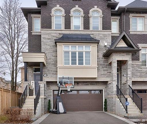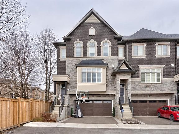 Welcome to Oakville's sought after neighbourhood, Westmount. This stunning 2,174 sqft end unit executive townhome features classic stone and brick exterior, stylish windows and doors, and a lovely covered front entrance. The ground level offers a spacious family room with large windows, hardwood, access to the double car garage and a powder room. A lovely wood staircase leads to the main level and the spacious, bright great room featuring a gorgeous fireplace with floor to ceiling marble surround, hardwood, pot lights and walk-out to the large balcony with ample room for outdoor living. The large kitchen showcases rich wood cabinetry including a pantry, pot drawers, quartz counters, island with breakfast bar, stainless steel appliances and polished stone backsplash, and enough space for a large dining table. The third level offers a fantastic master suite with tray ceiling, walk-in closet and 5 pce ensuite with double sinks, granite counters and a massive shower. Two additional bedrooms, and a 4 piece bathroom complete this level. Great schools, walking paths, nearby shopping, easy access to highways and much more. Book your appointment to view soon, a town home of this caliber won't be on the market for long!