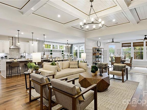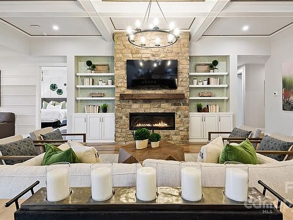 Ready to Move-In, Ranch-Style Living at its Best! 3 Bed, 3 1/2 Bath located in Handsmill on Lake Wylie. Gourmet Kitchen with Pantry Organizer System, Upgraded Cabinetry with Crown detail and Cushion Close Drawers. Cabinet Roll Outs where possible. Granite Countertops and Island, GE Stainless Steel Cafe 30" Gas Cooktop & Wall Oven w/Wall Mount Stainless Chimney Hood, Dishwasher, Microwave and 27.8 Ft. French Door Refrigerator. Laundry Room has Upgraded Cabinets, Granite Counters, Undermount Sink and GE Front Load Washer/ Dryer. Open Great Room w/ stunning Six Box Coffered 11 ft. Ceiling with Gas Fireplace, Stone Mantle and raised hearth. Bright, Open Sunroom leads out to the pavered patio with outdoor fireplace. Beautiful Julian Maple-Blanco Wood Floors throughout main living areas. The Owner’s Suite is tucked off the Great Room in the rear, and highlights include a coffered ceiling, dual-sink vanity, large Walk-In Closet, and a make-up/dressing area. *Furniture not included.