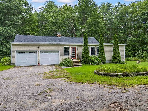 Spacious single level home, close to the New hampshire border, yet convenient to Sanford shopping. Enter the home into the living room with stone fireplace with insert and admire the wide pine floors in the open concept LR-KIT, and enjoy the dining room alcove. There are two carpeted bedrooms with shared full bathroom, as well as a large primary bedrooms suite. From the living room, step out onto the very private deck and enjoy nature all around. Across from the main house is a separate, free-standing workshop building, with Farmer's Porch and lots of knotty pine, and which could be finished for guest quarters, potential game room upstairs and even turn into retail space. A couple of sheds and a two-car barn-garage complete the package. Delayed showing - showings begin August 23, 2024