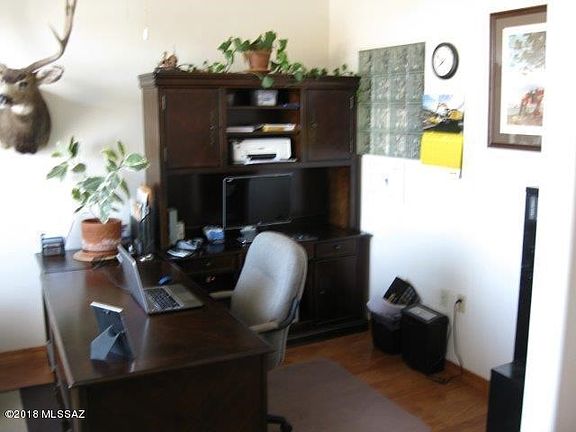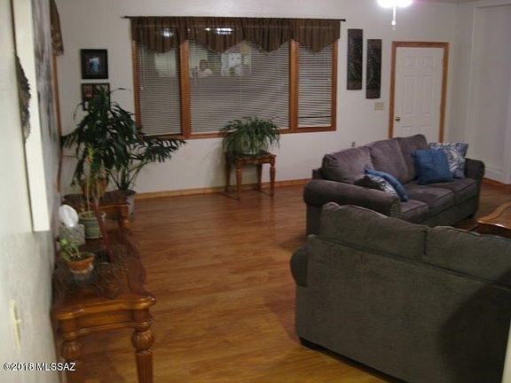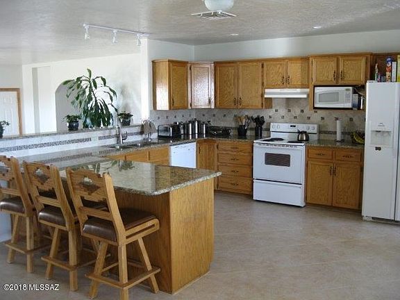 Come fall in love with this beautiful home with an amazing view of Mt. Graham! This 3 bedroom, 2.5 bath home is on 1.01 acres and is completely bordered by state land on its southern property line. This home has a fenced backyard, perfect for entertaining, with a fire pit and seating wall. The garage has been fully enclosed to create a multi-purpose room that can be used as a gym, children's playroom, or even a possible separate daycare area. This home features a large elevated kitchen and dining area adjacent to a spacious living room. The kitchen has beautiful granite countertops and a seating bar with under-counter storage.