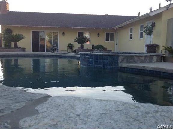 Price Reduction! HORSE PROPERTY! Stunning upgrade Ranch style pool home on large flat lot horse property. 3 bedrooms,plus a den could be a 4th bedroom, 2 beautiful bathroom 2 car garage on .78 acre. Walk into tile flooring throughout except in bedrooms. 2 fireplaces, one in living room other in family room. All rooms with beautiful ceiling fans, no need to turn on the a/c. Beautiful custom bathrooms with marble tile flooring, master with two individual sinks. Custom upgraded with Saint Laurent Marble Tile and Vessel bowel sink with oil rubbed faucets. Individual spacious laundry room. Mirror closet doors, master has double closet space. Hallway also has Saint Laurent Marble Tile to give it an elegant feel. Kitchen with stainless steel stove and dishwasher and built in wine cabinet. Also with marble counter top. Dark wood cabinets. Crown molding throughout, recess lighting. Pool and Spa had a major remodel with new pool equipment, finished and slate border. Outside fire pit, built in BBQ Grill and extensive hardscape. Perfect to entertain. Bring your horses and toys. Easy freeway access. Very clean home, must see!