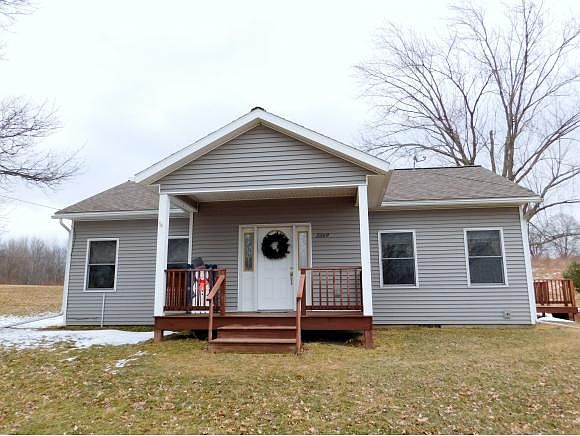 Beautiful 2-bedroom ranch, huge 3200sf insulated work shop, and 2-car detached garage on 16 acres with a pond! Open floor plan offers cathedral ceiling w/upper windows that provide plenty of natural light. Beautiful floors, large kitchen w/appls, plenty of cabinets/counter space. 2nd laundry hook-up on main floor provides single level living. Finished basement. Covered front porch & large rear deck. Amazing 360 deg views from the property.