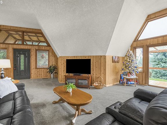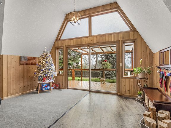 One-of-a-kind dome home on a fenced and gated 1.84-acre setting with mountain vistas is the definition of “unique.” Take in sweeping north views of Mt. St. Helens and Mt. Adams, and east views of Mt. Hood. A 270 sq ft movable tiny house with a full kitchen, living room, bathroom and loft bedroom is perfect for guests, multi-generational living, or a creative studio. Inside, the spacious living room has soaring ceilings and sliders to a wraparound deck making it ideal for entertaining. Centered between the living and dining areas, a striking stacked-stone fireplace showcases a certified Lopi wood stove. The kitchen is made for gathering with a large cook island and eat bar, newer stainless appliances and a pantry. The primary suite is on the main level with a walk-in closet and easy access to the bath featuring a relaxing soaking tub. There's also a separate bath with a walk-in shower and a laundry room with a utility sink, built-ins, and direct access to a fantastic enclosed carport, perfect for storage, hobbies, or a hangout space with sliders opening to a covered patio and hot tub. Upstairs you’ll find two more bedrooms, a half bath, and a loft area ideal for a media space or reading nook, and an office space complete with built-ins. Recent updates add move-in-ready appeal, including new carpeting, LVP flooring, lighting, interior paint, and detailed woodwork. Outside, enjoy a beautiful, expansive backyard framed by pine trees that create a private, secluded feel. Gardeners will love the private well with dual cisterns for reliable irrigation, plus a water filtration system, new well pump and newer HVAC system for peace of mind. Outbuildings including a 24x36 pole barn, greenhouse, school bus shelter, and wood shed offering space for projects, animals, storage, and more. There’s also a large driveway with plenty of room for RV parking. Just minutes to dining, Springwater Golf Course, McIver State Park, and the Clackamas River.