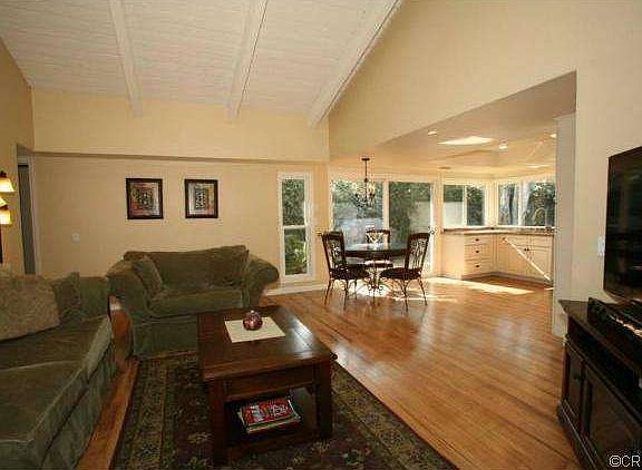 Wow, 4 BR single story, almost 2000 SQFT, quiet end of cul-de-sac location. 3 car garage, large private yard with plenty of entertaining area and several patios, open floor plan with huge vaulted ceilings, lots of new windows and doors that accent the outside. The open beamed ceilings are accented with skylights, recently remodeled with new kitchen and bathrooms. The kitchen features new soft close drawers and cabinets, granite counter and stainless steel appliances. The remodeled bathrooms have travertine floors and showers, raised shower heads and new cabinets with granite counters, new sinks and hardware. There is recent flooring as well as the finished garage has built in lighting and a door that leads to a separate patio or storage area. This location is close to the Beach and Tennis club, shopping and plenty of restaurants. I would highly recommend seeing this property quickly because there are not many with this combination of features.