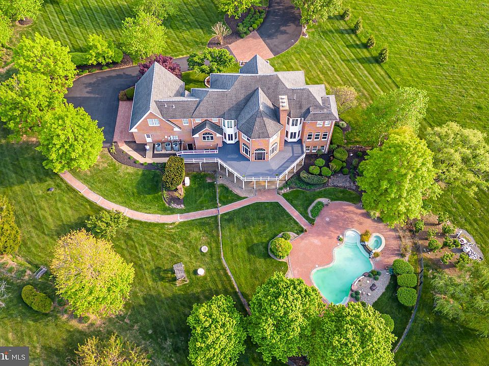 Stunning 5.5+ acre estate on your own private oasis. With zoning changes in sought-after Loudoun County, this expansive, private lot is becoming a rarity. This fully-brick home, open two-story foyer and stunning travertine stone tile floors. The rest of the main level features beautiful hardwood floors, high ceilings, crown molding, wainscoting trim package, built-in shelving, gourmet eat-in kitchen with granite countertops, Viking 5-eye gas stove with recessed vent and Viking double oven, sunroom, great room with gas remote-controlled fireplace, 2 half baths, separate dining room, and a large space that can serve as a living room/music room/library/office . . . and every window has a picturesque view! Three recently-installed HVAC systems. Never worry about emergency power outages with the new, whole-house Generac generator. It is fueled by the 1,000 gal. underground propane gas tank that you own. Bonus: the tank is nearly full and conveys to the new owners. The main level family room opens to the newly-painted deck that wraps around the back of the most tranquil setting, overlooking the pool and distant woods. There are 2 staircases leading to the upper level: no carpet in any of the rooms! French doors with transom window onto the hardwood floors of the large master suite. Inside, there’s a grand fireplace, an adjacent sitting room, floor-to-ceiling bookshelves, and a large walk-in closet. The spacious master en suite features double sinks with natural, stone custom countertops, separate shower and toilet areas, and a gas fireplace to set the mood while you relax. Each of the additional 3 large bedrooms upstairs has its own en suite bathroom. The spacious upstairs laundry room features a large capacity dryer, a new Samsung smart washer, utility sink with granite countertop. The lower level is not an ordinary basement, but a fully-finished English walkout with high ceilings and lined with windows, providing a full third floor of luxury and entertainment possibilities. This level features new travertine stone tile flooring; a remote-controlled gas fireplace; and a beautiful new bar with quartz countertops, stainless steel sink, and high end wine and beverage cooler. Two spaces here are large enough for a pool table, so take your pick! One of the rooms features a custom built-in wine closet and would make a perfect wine-tasting room or theatre. A bedroom is also tucked away in the lower level. This entire space can be an in-law/visitors own private apartment. The bathroom features an oversized shower and plenty of closet space. Never run out of hot water with 2 tankless water heaters! The basement has 2 sets of large French doors that walk out to the recently-installed, lighted stone path and recently-refinished stone deck. The spa and pool were both upgraded in 2019. The pool has a graduated entry to a depth of 5’ . It can be conveniently controlled remotely through the new Pentair operating system/warmed with the electric heat pump. The lot of this custom home was meticulously graded and designed with French drains. There are 3 Nest thermostats, Culligan water softener, 3-car garage with spare refrigerator/freezer. Updates: whole house Generac GENERATOR (May 2022)/3 new garage remotes (2023) Samsung 5.2 cf lg capacity smart top load washer (2022)/3 new HVAC units (2020 and 2022) w/ extended warranties transferable to the new owner/Kitchen and Bar cabinets refinished (2022)/New pool operating system PENTAIR w/remote capability (2021)/New landscape, path and spot lights (2021)/Updated basement bar w/ quartz counters (2021)/TYLZA wine and beverage refrigerator 24 inch dual zone wine cooler(2020)/Driveway resurfaced (2020)/New septic lid and pump (2020)/New pool decking and new sidewalk path; pool and hot tub resurface (2019)/New dishwasher, water tank, and 2 tankless water heaters (2019)/Purchased underground 1,000 gal propane gas tank can be filled by any vendor. (2019)/Dolphin pool cleaner, pool pump/ motor(2018)
