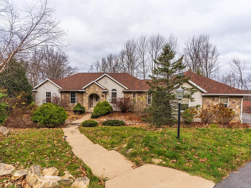 This sprawling ranch home nestled in the highly sought-after area that is just on the edge of Granite Peak ski hill in Rib Mountain is available! Situated amidst an enclave of elegant residences, this home offers a sophisticated ambiance and a captivating curb appeal. Prepare to be impressed by the numerous recent updates, including a new roof in 2019, a new grinder ejection pit in 2019, and new patio doors in the basement in 2020. Other notable improvements include a new furnace board in 2020, a new driveway in 2020, high-end stainless steel appliances, newer bedroom carpeting, and a new AC unit installed in the fall of 2022. Step into the foyer, where the grand floor-to-ceiling windows and rich red oak floors create an inviting atmosphere that will instantly make you feel at home. The 12-foot vaulted ceilings further enhance the spaciousness of the living area. Adjacent to the foyer, glass French doors lead to a versatile space that can serve as a formal dining room or a main floor office, allowing you to tailor the home to your specific needs.,The living room exudes warmth with its magnificent stone gas fireplace and offers breathtaking views of Rib Mountain. The adjoining dining area seamlessly connects to the kitchen, where a generous island with granite countertops provides additional seating for casual meals. The kitchen is a chef's dream, boasting built-in double ovens and a striking 4-burner gas stove with overhead microwave. The smart touch screen refrigerator adds a touch of modern convenience to the space. Near the garage on the main level is a well-appointed full bath, a practical laundry/mudroom area, and a thoughtfully designed built-in desk space. The mudroom features a floor drain and custom hooks, making it easy to store and dry your winter gear after a day on the slopes. Continuing through the main level, you'll discover a second full bath and two bedrooms adorned with dimmable lighting and plush new carpeting. The spacious main floor owner's suite is a true sanctuary, offering a walk-in closet with built-ins and an en-suite bath that showcases marble-tiled flooring, a walk-in shower, and an indulgent jetted soaking tub. The lower level presents a welcoming family room complete with a second stone gas fireplace, a wet bar, and a convenient mini fridge. French doors open to a walk-out basement and a delightful stone patio, creating an ideal space for outdoor grilling and entertaining. The maintenance-free composite deck, accessed by a charming stone pathway, leads back into the main floor dinette area. Adjacent to the family room is a generously proportioned office space featuring elegant tray ceilings. Down the hall, three more well-appointed bedrooms with double door closets and a full bath offer ample accommodations for family and guests. Throughout the home, solid six-panel oak doors add a touch of elegance. Don't miss your chance to experience the allure of this exceptional residence. Schedule your private showing today and seize the opportunity to make this remarkable home your own!