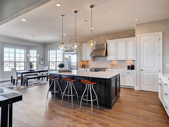 10' Ceilings throughout, gourmet kitchen with large island and stainless steel appliances, master with walk in closets, expanded back deck with covered patio, backs to open space, view of the clubhouse, 3 car garage, unfinished walk out basement.