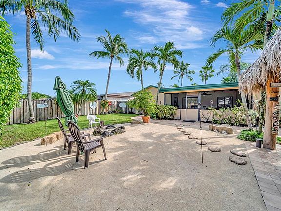 WELCOME TO THIS BEAUTIFULLY MAINTAINED 3/2 HOME W/VERSATILE DEN THAT CAN EASILY BE CONVERTED BACK TO 4TH BEDROOM. THE CIRCULAR DRIVEWAY & REFRESHED LANDSCAPING CREATES AN INVITING FIRST IMPRESSION. STEP INSIDE TO FIND A SPACIOUS OPEN-CONCEPT LIVING/DINING AREA, FRESHLY PAINTED, IDEAL FOR BOTH EVERYDAY LIVING & ENTERTAINING. THE UPDATED KITCHEN FEATURES RICH BROWN CABINETRY, GRANITE COUNTERTOPS, NEW FRIDGE & OVEN, ABUNDANT COUNTER & STORAGE SPACE. LARGE PRIMARY ROOM W/WALK-IN SHOWER. OUT BACK FEATURES:FULLY FENCED IN YARD, DESIGNED FOR BOTH RELAXATION & FUN. ENJOY A SCREENED-IN PATIO, BRAND-NEW TIKI HUT, FRESHLY LAYED SAND SURROUNDED BY PAVERS & OPEN GRASSY AREA. ROOF:2017, NEWLY PRESSURE-CLEANED DRIVEWAY & REFRESHED LANDSCAPING.