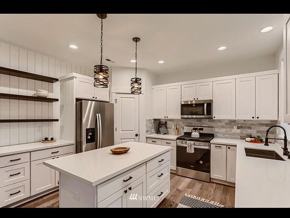 Beautiful 2 Story home built in 2021 for rent offers gorgeous designer kitchen w/quarts counters, chef's island, stainless appliances including gas range, refrigerator, washer and dryer & wine cooler . Great room w/gas fireplace leads to an amazing 12x16 covered deck and fully fenced/landscaped back yard. Upstairs you will find master bedroom w/vaulted ceilings, walk-in closet and spa like 5 piece master bath. There are 3 more bedrooms, full bath, linen closet and laundry room w/sink/vanity. All bathrooms have quartz counters, undermount sinks & tile floors. 2 car garage prewired for elec. vehicle. Great location just minutes shopping ( Costco, Trader Joes, Walmart , Safeway, Everett Mall ) & freeway access. Renter is responsible for Utilities ( Gas and Electricity ) Pet Fee - $150