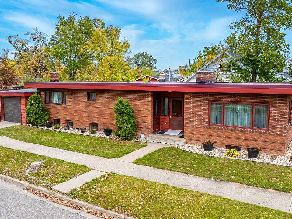 Directly across the street from Bemidji State University on a corner lot. Solid brick ranch with 3 bedrooms and 2.5 baths total: main home has 1 full bath plus a half bath in the finished basement; a separately keyed portion of the basement adds another full bath. Main level includes living, kitchen, dining, a sunroom, Andersen windows, and a fireplace. Downstairs offers a family room with a second fireplace, a bar area, laundry, and storage. A separately keyed entrance serves part of the basement with a kitchenette, full bath, a third fireplace, and a non-conforming room that could become a bedroom with proper egress (buyer to verify)—excellent flex space for guests, work, or hobbies. Outside, the fully fenced backyard features a pergola, extensive paver patio with rock landscaping (minimal lawn front and back), and an additional storage shed. Attached 24×24 2-stall garage (no direct interior entry). Mostly original, well-kept finishes ready for thoughtful updates.