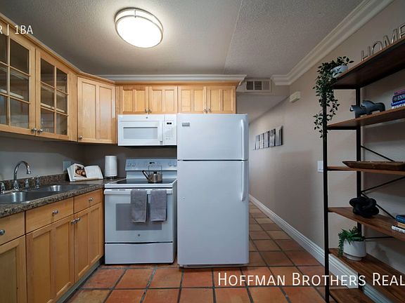 Experience comfort and style with this thoughtfully designed apartment, featuring spacious light wood stained cabinets that offer both charm and functionality. The home is enhanced by Saltillo tile floors and elegant granite countertops, creating a warm and inviting atmosphere. A complete set of modern appliances includes a refrigerator, electric stove, microwave, and disposal for everyday convenience.