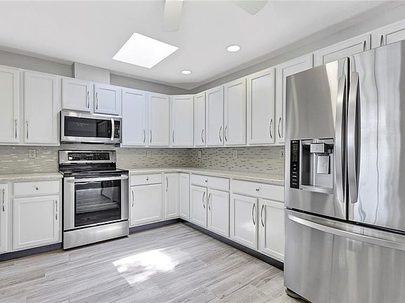 - Interior Features: Ceiling Fans(s), High Ceiling(s), Living Room/Dining Room Combo, Vaulted Ceiling(s), Skylight(s), Window Treatments, Open Floorplan, Solid Surface Counters, Kitchen/Family Room Combo, Stone Counters