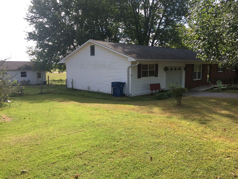 Brick home 3 Bedroom, 1.5 Bath on level lot with trees in city limits. Home has a storage shed and attached garage. Fenced Backyard. Central Heat and Air.
