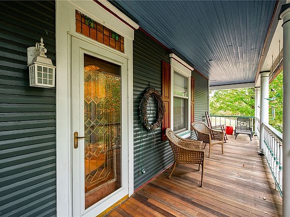 Welcome to this 1904 Turn of the Century Post American Foursquare home with a detached 3 level 40x28 three stall heated garage. The Original 1904 three level 16x20 springhouse is attached to garage. This Five-bedroom 3.5 bath home is a rare opportunity. Enter through the front door with a large living room and sitting room or office on each side with working pocket doors. Huge Eat in Kitchen that goes to a nice sized dining room. Conveniently located first floor laundry and powder room. Most of main floor has oak hardwood flooring. Upstairs are 4 bedrooms and 2 full baths. The Master Bath has its own bathroom with a free standing soaking tub and shower. Theres a generous sized closet off the bedroom for the Master Suite. Up to the third floor bedroom could be a game room or mancave. Full bathroom with a heated whirlpool bathtub. There are four decorative fireplaces. Sit Outside on the large covered mahogany wrapped around porch. 4.6 acres with 2 acres fenced in with a windmill.