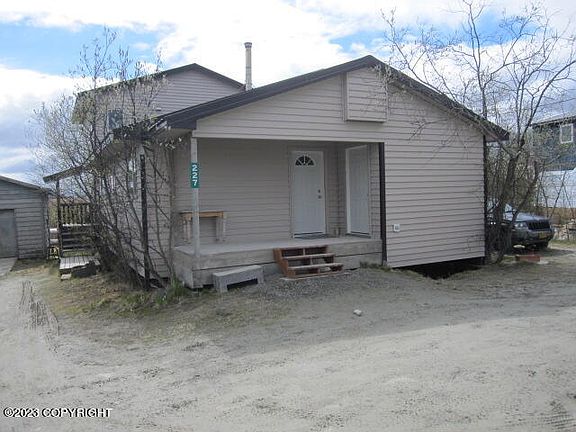 3 bdrm, 1 bath on main floor with a cozy 1 bdrm, full bath upstairs apartment; separate entrance; great for rental or a B&B. Large deck; open tundra view; large sand pad, detached garage, large decks,storage areas, 2 solid interior wood doors, cross hatch construction, triple pane windows, corian window sills, kitchen self closing cabinets, corian counters, piped water.steel appliances