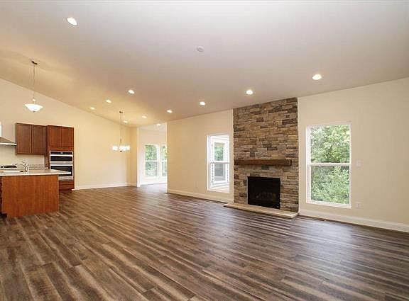 Why wait months to build when you can move into this beautiful Rochester model, ranch style home with bonus sunroom and an open floor plan (new construction) with over 2000 sq ft. Home features a beautiful Stone gas fireplace in the family room and plenty of recessed lighting. 9ft and Vaulted ceilings can be found throughout the main level. Beautiful kitchen has 42" cabinetry, a large walk in pantry, a center island, upgraded gourmet stainless appliances w/gas cooktop and wall oven. The master bedroom suite has coffered ceilings, a large master bath and walk in closet. Opposite the master are 2 more bedrooms and full bath. The open staircase w/stained oak/iron spindles lead you to the The walkout lower level with a 10 ft pour, rough in for bath and upgraded furnace/ac and humidifier. Architectural shingles, coach lights on the garage and a main floor laundry room off of garage with space for future cubbies or hall tree. This home is truly MOVE IN READY!