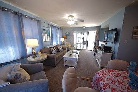 This beautifully appointed (2) bedroom (2) full bath condo comes complete with breathtaking views of the Atlantic Ocean from the two 2nd floor decks! The master bedroom has a queen sized bed, private bathroom and large closet. The 2nd bedroom has (2) twin sized beds, private deck and plenty of closet space. The open floor plan allows views of the ocean, with the 9 foot sliding glass door, while preparing meals, relaxing in the large living room or enjoying meals at a table for 6 guests. The deck off of the living room has a bar height table and chairs to enjoy a meal while watching the numerous dolphin and sunsets. There is a separate laundry room with new (2020) stacked laundry system and plenty of storage and also a locked owners closet to store personal items The home is being sold turn key to allow for immediate enjoyment.