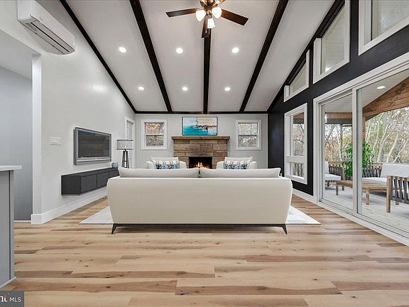 3 bedrooms plus a bonus room. Secluded Modern Gem with endless possibilities: thrive with a Short-Term Rental (STR), escape to a tranquil vacation home, or make it your forever residence. The living room boasts vaulted ceilings and exposed wooden beams. Central A/C throughout. Recessed lighting adds a contemporary touch. Cozy up with the wood-burning fireplace upstairs. The gourmet kitchen delights with all-new stainless steel appliances and granite countertops. Fresh flooring provides a seamless, contemporary finish. Step onto your newly constructed deck, surrounded by tranquil woods for generous privacy. Both full bathrooms are fully updated. The lower level offers two bedrooms and a spacious living area with a fully built-out electric fireplace. Schedule now to view!