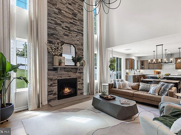 Completed in 2022 and impeccably curated, this 5-bedroom, 3.5-bath Hampton Run residence blends timeless architecture with today’s most sought-after upgrades. From the moment you arrive, the stately two-story facade, crisp white trim, and welcoming front porch create a commanding presence. Inside, soaring ceilings frame a breathtaking two-story stone fireplace accented by a statement chandelier — the home’s undeniable centerpiece. The open-concept design flows into a chef’s kitchen appointed with upgraded cabinetry, GE Profile appliances, and generous prep space, ideal for both intimate dinners and grand entertaining. Upstairs, the spacious primary suite offers multiple closets and a spa-inspired bath featuring a frameless glass rain head shower and expansive dual vanities. Additional bedrooms are generously sized and beautifully finished, while a convenient second-floor laundry makes daily living effortless. The walk-out lower level provides a large recreation room and is ready for your future vision with a bathroom rough-in. Step outside to a large, private, fenced backyard with an irrigation system and wooded views — a rare find in city limits. Perfectly positioned just minutes from I-95, commuter lots, upscale shopping, dining, and Marine Corps Base Quantico, this home delivers the best of refined living and everyday convenience. Modern, and turn-key, — don’t miss your opportunity to make it yours.