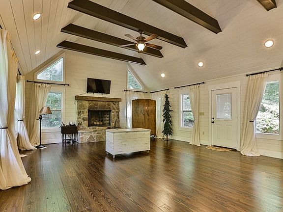 It's Yabba Dabba Do time! Almost completely remodeled adorable cottage style cabin sitting on 5 unrestricted acres with WIDE and ROARING "White Water", 2 waterfalls plus a deep clear pool with sandy river bottom and huge boulders. Fall in love with the character and charm of this home. Plenty of relaxing space with this recently added 20x20 great room full of windows overlooking the water. New foundation, bathrooms, kitchen w/ granite counters. Tons of outdoor decking to enjoy water noise and views. Move in and just enjoy paradise(everything is already updated for you!).End of road privacy.Pasture views. Near National Forest. Home is NOT in a flood zone.