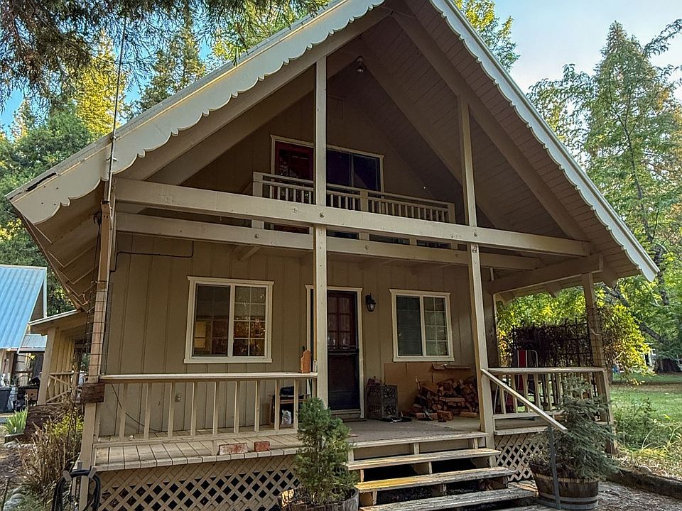 Mountain chalet 3/2 corner lot w/ garage. Ready for a mountain retreat?! This 3-bedroom, 2 bath chalet A-Frame style home sits on a half-acre flat corner lot in charming neighborhood Coffee Creek! Home features a welcoming rock patio leading you to the covered front porch. Inside you'll find wood ceilings w/ exposed beams for that cabin feel, wood stove to keep you warm in toasty during the winter months, downstairs main bedroom w/ large walk-in closet, galley style kitchen has side door entrance for convenience from garage side entry, w/d hook ups, dining room & mini-split installed for easy heat or cooling! Upstairs you'll find a guest bath and two large bedrooms w/ vaulted A-Frame style wood ceilings, front bedroom also offers a balcony to enjoy morning coffee or maybe a little afternoon breeze & a cooldrink.Detached garage has paved driveway, auto opener, workbenches & shelves and back staircase for additional space for storage or a great bonus room for crafts, office? Outbuildings for all your extras, wood storage & propane tank. The yard is established nicely w? grass, fruit trees, a pink dogwood & more! Plenty of room to park your toys! Enjoy the Alps-hiking, backpacking, fishing, hunting or boating on Trinity Lake!