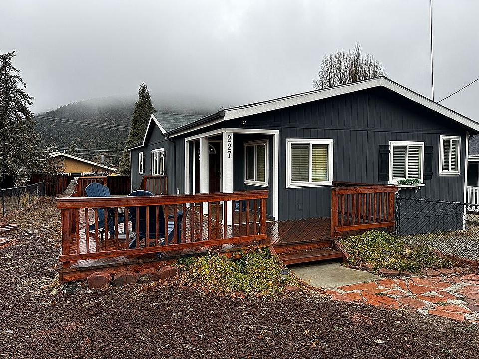 This well-kept home in Lake of the Woods is sure to charm you! Manufactured in 2005 and sitting on a stable concrete slab. You are greeted by a welcoming wood deck as you approach the main entrance featuring new outdoor carpet. Stepping inside, you will find a spacious and well-appointed 3 bed 2 full bath home with new carpet throughout. The living room flows easily to the dining area and then into the kitchen, with ample ceiling height throughout. Master bedroom has 2 closets and master bath offers a large soaking tub in addition to the double sink vanity. Roomy laundry room leads to side entrance and guest bath. Fenced yard and durable shed in back are a bonus! Come check it out!!!