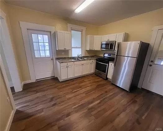 Beautiful Lower unit in 2-family in Solvay. Nice yard, Washer and dryer in basement, completely renovated, Section 8 eligible. Dog rent $30/month plus additional $200 security deposit. NO CATS. Water included, tenant pays other utilities. Solvay Electric. Lawn mowing and snow removal included. Quiet, trustworthy tenants with excellent rental history/references only, please. Showings start 4/16/23. No smoking inside unit.
