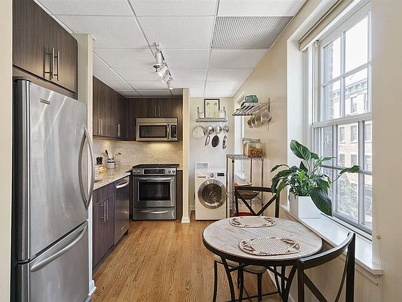 This amazing 1 bedroom, 1 bath condo features high ceilings, beautiful hardwood floors and open concept living. The modern kitchen includes stainless steel appliances, granite counter tops, espresso cabinets and a beautiful back splash. The bathroom features timeless white subway tiles and beautiful tile floors. Plenty of closet space for all your storage needs, washer/dryer, complete this amazing package! The building is a full amenity complex with 24-hour security, concierge, and an 8,000 sq. ft. multi-use lifestyle center with a gym, basketball/volleyball court, locker rooms, sauna, screening room and much more! Located a short walk to the Grove Street PATH, the Light Rail, Liberty State Park, Van Vorst Park, Hamilton Park, the restaurants on Newark Ave. and more!