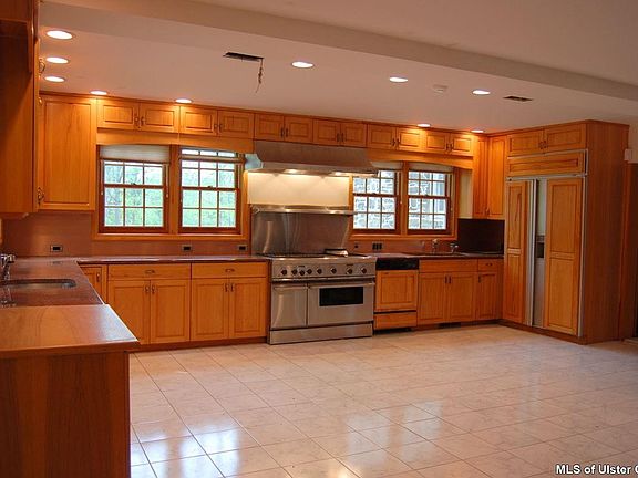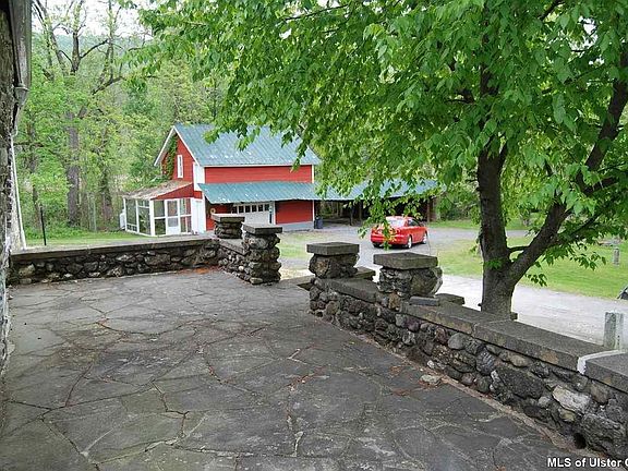 A unique opportunity to own a piece of history. Located down a long country driveway this stone house circa 1820 awaits your loving touches. Approximately 45 acres surround this totally private homestead boasting total seclusion with all the amenities of town just moments away. A perfect property for large gatherings. The wood frame addition adds much space to an already comfortable home. Much of the stone house has original details with plank floors, exposed beams, stone fireplaces, wainscot ceilings, massive stone walls, a cedar shake roof, countless custom wood built-ins and a lovely stone patio entry. The magnificent over sized eat-in kitchen has been totally updated and is a huge space for entertaining! There is a Subzero fridge, a Thermador commercial grade stove and custom cabinets, counter tops, and copper back splashes; All this with a huge eat in area and a brick fireplace . This is truly a culinary dream kitchen. The master suite, although in need of some updating, is spacious with a two sided fireplace. One facing the bedroom and the other facing the enormous bathroom with a double Jacuzzi tub, and a steam/sauna shower. The "new" addition sets forth large flowing rooms and even more space to this already impressive structure. Along with that is a stunning framed and roofed addition that is attached but not connected to the main house. Plans were for an in-ground, indoor pool but this space would be perfect for a studio, office/workshop, recording or media studio, or just more living space, making it worthwhile to complete. The privacy of this property would make for a perfect retreat, Bed and Breakfast, or family compound. Amazingly enough there is municipal water and sewer at this property! Convenient to Kingston-Rhinecliff Bridge, The Strand at the Rondout Waterfront, and an easy commute to New Paltz or the Mid Hudson Bridge.Bedrooms 5 & 6 on Level 2 measure 12'9x10'7 & 9'7x12'4. There is also a summer kitchen and a sub zero freezer on the lower level.