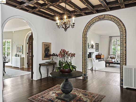 This stately 6 bedroom, 5+ bathroom 1920's Spanish Colonial Revival masterpiece is a glorious sight to see.The open plan, beautiful scale, light, and exceptionally livable layout give this home a friendly California feel while maintaining its grandeur. Step inside and exquisite details are everywhere: intricate wrought ironwork, artisan tile, a hand painted, coffered ceiling at the entry and elaborate stuccowork are just the beginning. The true surprise is the prohibition era speakeasy on the lowest level festooned with impasto murals of dancing girls. If you are not in love at first sight, you certainly will be by the time you leave!