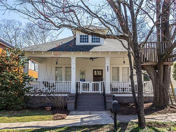 Welcome home to this quintessential craftsman bungalow with large rocking chair front porch in the heart of the city of Decatur. This light-filled 3 bedroom, 2 bath home features beautiful heart pine floors, 11-foot ceilings, four decorative fireplaces with wood mantles and original tile surround. Formal living room opens to separate dining room and into the large eat-in kitchen with stainless steel appliances, double oven, and butler's pantry. Mudroom leads to back deck, perfect for outdoor dining. Large master bedroom has space for home office, walk-in closet, and french doors that open to back deck. Two secondary bedrooms have space to accommodate work and school from home. Fenced backyard includes fire pit area, raised garden beds, playset and workshop. Off-street parking for 2 cars. Recent updates include brand new roof, fresh exterior and interior paint, and tankless gas water heater. Don't miss extra storage space in attic and crawlspace. Enjoy an easy stroll to Adair Park, and shops and restaurants in Downtown Decatur and Oakhurst.