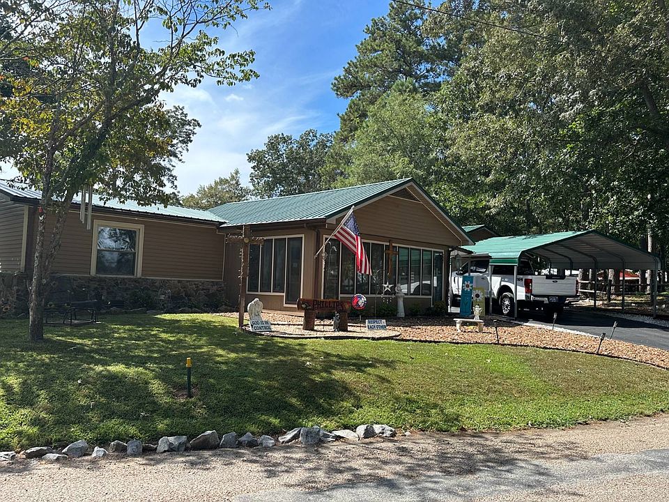 Highly desirable, Pine Point subdivision, near Buchanan Resort on Kentucky Lake. TVA free, public launching ramp right in front of the house. Subdivision is golf cart, side by side and ATV approved. Lake view 3BR/2BA, corner lot with access from two separate streets. 2 car detached garage and 2 car carport. Large, open kitchen with eat-in area and pantry. 11x13 screened porch off the breakfast area. Wrap around porch on 2 sides. Large living room with gas log fireplace. All window treatments stay. Washer/dryer ih hall off the kitchen. Bedroom 1 has lake view with a marble walk-in shower. Bath 2 has handicapped bath and shower. HVAC is 2 years old. 2 car detached garage and 2 car carport. Asphalt driveway. Metal roof. Property includes a mostly furnished 2BR/1BA guest house (700 sq.ft.) with screened porch.Guest house has wall heat and air. Guest house provides the opportunity for rental income. Property is tastefully landscaped. Schedule your private showing today!