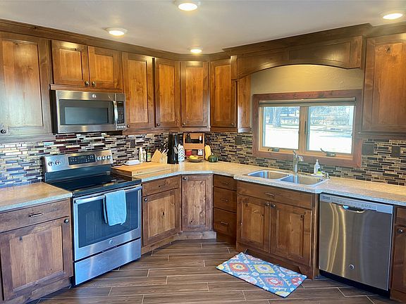 Perfectly adorable first time home. Has everything you're looking for with many updates and remodeling from 2015-2020.3 Bedrooms( 2 nonconforming) and 1 3/4 Baths, +/-2,036 sq ft. Beautiful new kitchen with Cherry hickory Cabinets and tile, back splash, flooring, stainless steel appliances, and new lighting. Primary bathroom has hickory cabinets, tiled jet tub/shower combo, tile flooring, and granite counter tops. Has newer carpet in primary bedroom and on the stairs to basement. 2 bedrooms in basement, family room, 3/4 Bath and laundry/mechanical room with newer boiler. Newer exterior doors, blinds, lights, and some newer windows. Roof and gutters new in 2020. Detached 2 stall heater and insulated garage with workbench and asphalt driveway. Sits on 2 city lots with newer underground sprinklers, Large back deck to have family get togethers on. Enjoy small town living with lots to offer and enjoy year around recreation and fishing on Lake Frances. Only 1 hour to Glacier National Park. Call Tresha Holden at 406-450-3382 or your real estate professional.