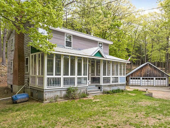 Four bedroom colonial on 6+ acres in Belmont, NH. This lovingly cared for home is awaiting your personal touches. The home boasts beautiful hardwood floors throughout. The large front to back living room complete with fireplace, is the perfect place for entertaining. The formal dining room is plenty big for family dinners. The eat-in-kitchen has a picture window looking out to the peaceful, wooded back yard. Also on this level is a half bath and laundry. Upstairs you will find four generous-sized bedrooms, all with good sized closets. A full bath completes this level. Off the front of the house is a huge enclosed porch, the perfect spot for morning coffee, book reading, or evening relaxation. There is plenty of room for all your toys in the detached three-car garage with storage above that could easily be turned into finished space. Enjoy the privacy of your own back yard for a long nature walk. This property is in a rural setting yet in close proximity to Downtown Laconia, theaters, restaurants, shopping, Gunstock Resort, Bank of NH Pavilion, and the lakes. (6 acre parcel next door is also being offered for sale). OPEN HOUSE SATURDAY MAY 20, 10:00-12:00.