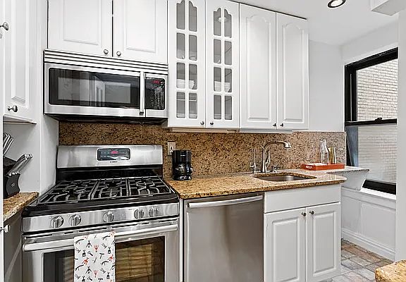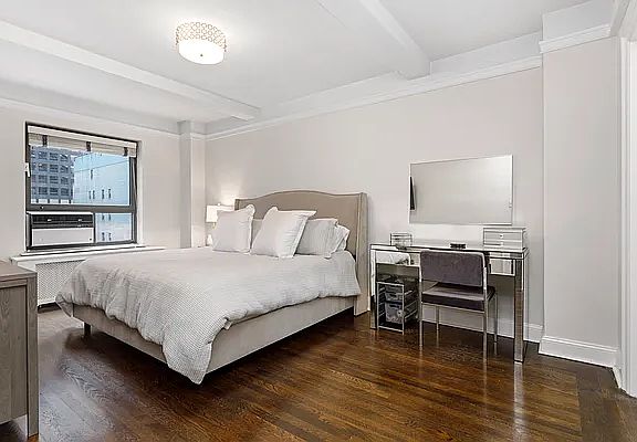 Very spacious and sunny prewar one-bedroom home located on 57th Street between 2nd and 3rd Avenue in a full service, intimate prewar building. A gracious entry foyer opens to a combination living and dining room. The living room has cove lighting, beamed ceilings and lovely hardwood flooring. There are three custom closets en suite, and a newly renovated windowed bathroom with Carrera marble and a mosaic floor, Carrera subway tile walls and glass enclosed tub/shower. The windowed kitchen has beautiful white cabinetry, some with glass paned doors, gorgeous granite counters, excellent storage, and stainless appliances, including Bosch dishwasher and stove. There is a cozy coffee counter right by the window to perch on a stool and look over the city. Other details include a huge walk-in closet off the foyer, oversized windows in living room and bedroom all facing south allowing for fantastic southern sun light to fill this 15th floor apartment, kitchen and bathroom have open northern exposures. 227 East 57th is a lovely intimate and full service 1930's building. It's facade and renovated lobby and hallways have lovely deco influences. Centrally located in the heart of Midtown East, across the street from Whole Foods, and very close to the City's best shopping and restaurants.