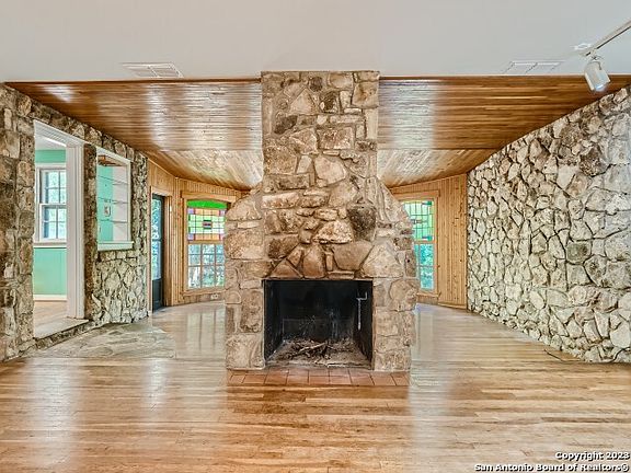 Location, location, location! Near Oak Park neighborhood, the Quarry, schools, restaurants, shopping, and iconic Alamo Heights eateries, this property is a prime spot to renovate existing home or build new on the 0.37 acre lot. This 1946 stone home is set back far from road and features original wood floors, stained glass windows, beautiful stone fireplace, garage workshop with full bath attached, indoor laundry, and second-story artist studio/playroom with abundant natural light. Main living space is 1836 ft, upstairs studio is 461 ft, and attached garage workshop is over 300 ft. You have so many options to combine and reconfigure all these 2500 sq ft! For those looking at investment opportunities, the Escondida at Sunset development right next door is building $2M+ homes. Don't miss this chance!