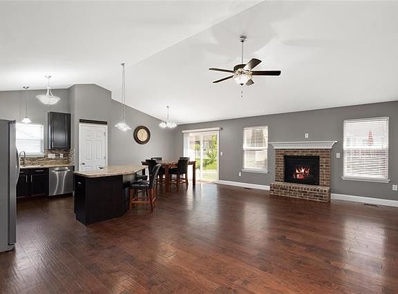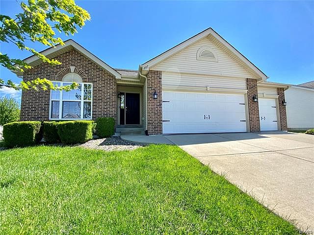 You've been waiting for this one in SHILOH/O'FALLON school district! The expanded Maple model with all of the bells and whistles. Engineered hardwood and crown molding through most of the main level from the foyer entry into the two large guests bedrooms (tv and mounts to stay!) The open living area has a gas fireplace with a vaulted ceiling into the kitchen (all of the appliances to stay), breakfast nook, and a large island that is great for entertaining. The master bedroom also has engineered hardwood flooring, coffered ceiling, walk in closet, and upgraded master bathroom with soaking tub, separate shower, and water closet. The basement has an additional finished 4th bedroom with wood tiled floors and walk in closet. The basement family room has custom woodwork, surround sound, and flat screen tv. Tons of storage space in the unfinished area of the basement. Don't forget fenced yard, custom patio, community pool, minutes to Scott Air Force Base, two new hospitals and shopping!