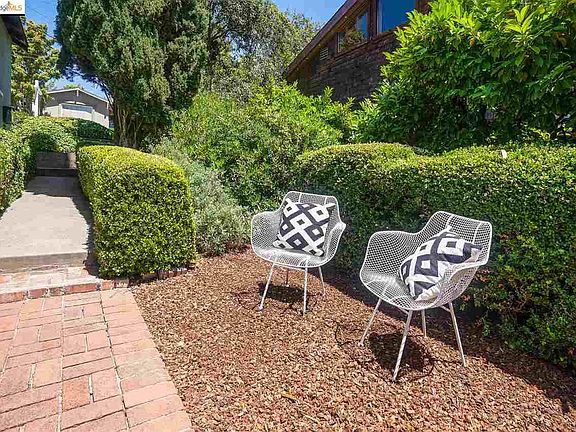 Charming Piedmont home ideally located on a tree-lined street in the center of town. Level-in through an entry courtyard brimming with natural light. This one-level living home boasts 2 generous bedrooms, 2 baths and plentiful storage. Graced with high ceilings, the living room has lovely paned windows and French doors leading to a sweet, private deck. The kitchen has been recently updated with all new appliances, including w/d. Adjacent to the kitchen is a lovely office or bonus space and dining with French doors opening to the entry courtyard, bringing the outside in. Windows have been replaced and are double pane. Two car detached garage with storage and workbench The home measures 1520 sq. ft. and sits on a 5704 sq. ft. lot! This home is a charmer!!
