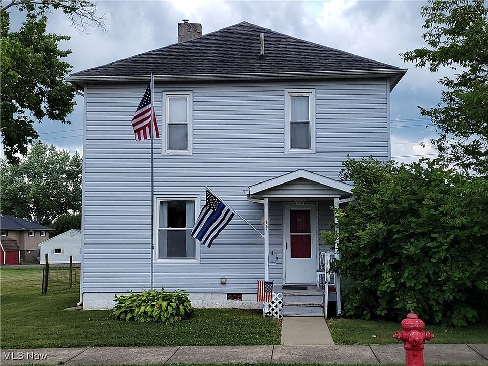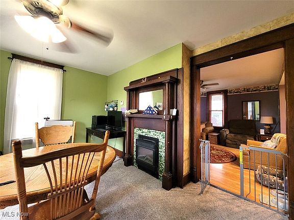 Charming three bedroom, one bath home with above ground pool. Corner lot. New carpet in the living room and steps. Beautiful original woodwork and fireplace adds charm to this home. Oak kitchen cabinets, hardwood floors on second floor. Newer furnace. New laminate flooring in the kitchen. Vinyl windows, New 200 amp electric service. Partially fenced in back yard. Small utility shed. All appliances stay.