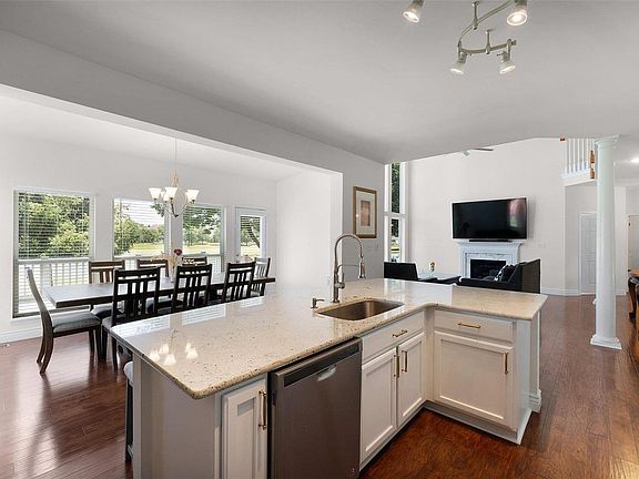 This elegant two story brick front home with three car garage in the desirable golf course community creates an irresistible curb appeal that you really have to see to believe! Step into the 2 story foyer with hardwood floor and open floor plan, you will discover quality & class w/fresh paint and carpet throughout. Two story great room is worthy of its name with a gas fireplace, wall of windows, open to updated gourmet kitchen that offers 42” cabinets, massive center island with breakfast bar, hearth room, overlooking the breathtaking fairway green and lake view! Two office spaces on the main floor perfect for today’s working at home new norm. 2nd floor offers a romantic master suite with vaulted ceiling, luxury bath w/ separate tub & shower. Gorgeous maintenance free deck and peaceful view highlight beautiful outdoor living… Convenient location, great schools, family friendly community, what an extraordinary value!