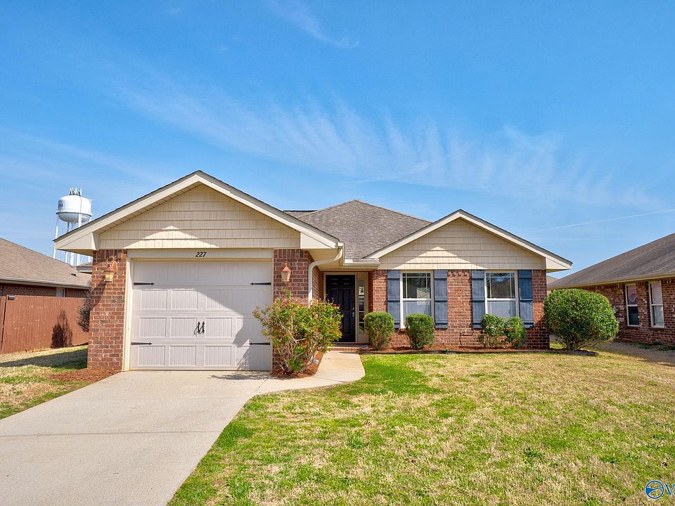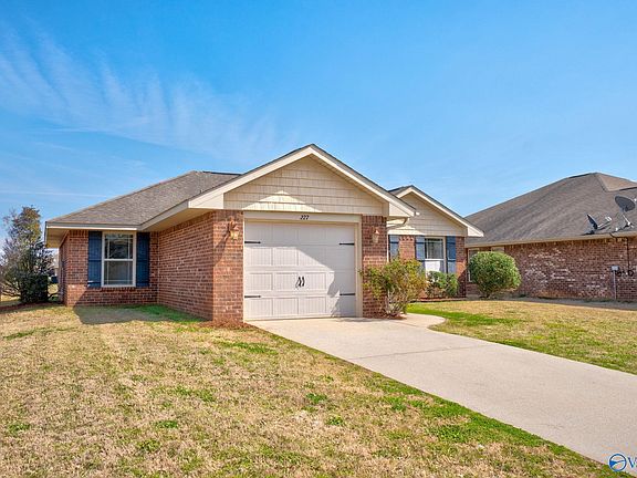 Full brick Rancher. 3 Bed 2 full baths. Features hardwood floors and trey ceiling in living room. One car garage and large covered patio. Easy commute to Redstone Arsenal, HSV International Airport, Trash Panda Stadium and plenty of dining and entertainment.