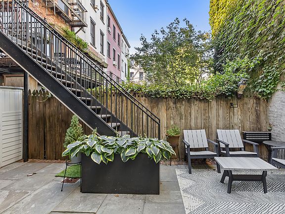 The thoughtfully designed Garden level features a spacious primary suite with a walk-in closet (including a washer/dryer), two additional charming bedrooms, and another oversized bathroom. This level offers direct access to the bluestone-paved rear garden, perfect for hosting or enjoying tranquil evenings.